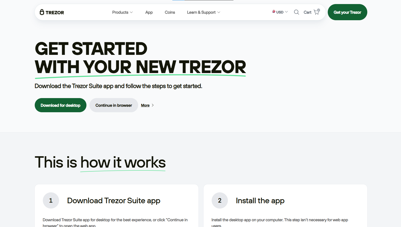 Go to Trezor.io/start using your preferred browser. Always verify the URL to ensure you are on the legitimate page.